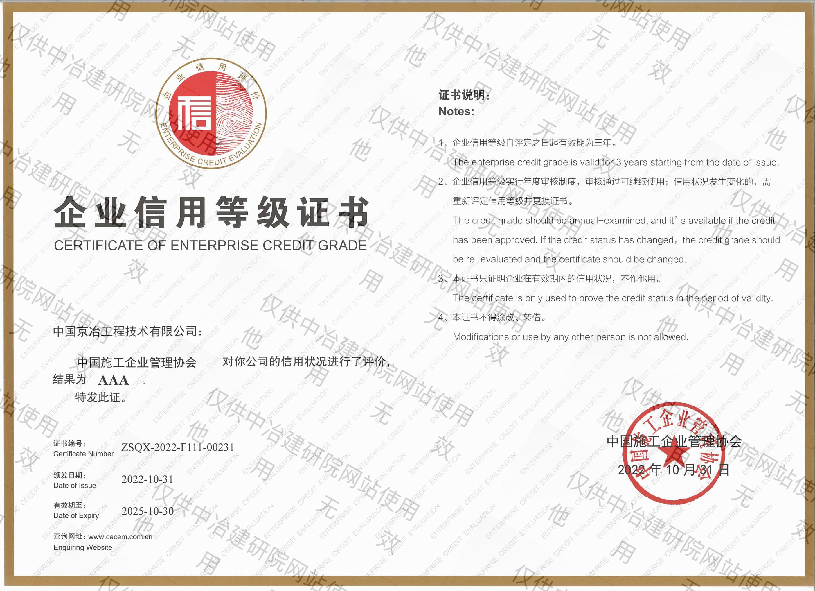 企業(yè)信用AAA等級證書